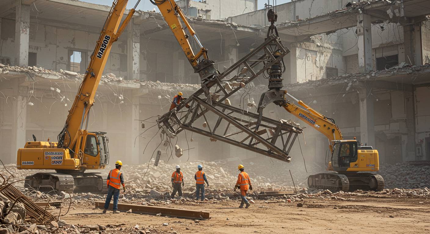 Демонтаж металлических конструкций с применением спецтехники при сносе зданий