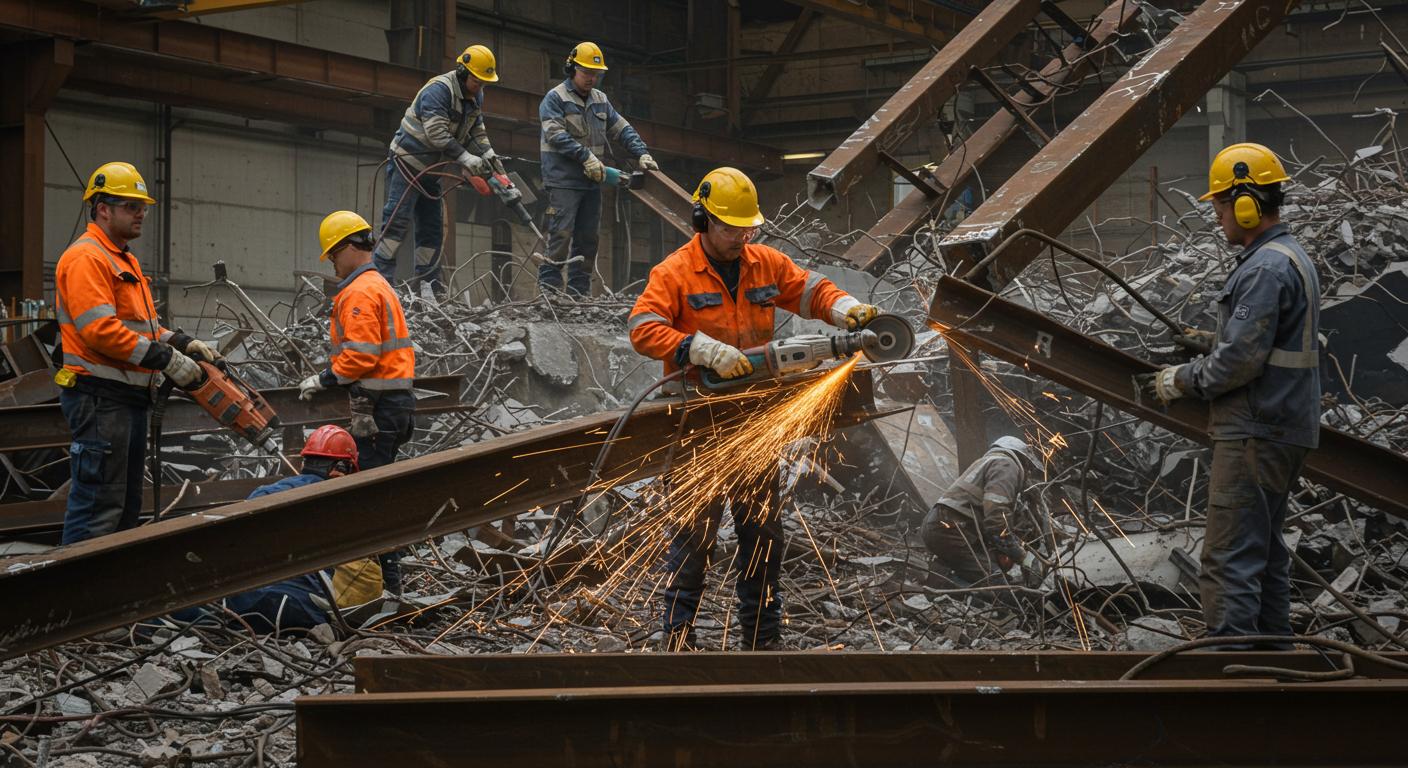 Механическая резка включает использование гидравлических ножниц, отбойных молотков, резаков и других инструментов. Этот способ особенно актуален при работе с небольшими объектами или вспомогательными элементами. Гидравлические ножницы, установленные на экскаваторах или манипуляторах, позволяют быстро и безопасно разрезать балки, трубы и профили. Такой метод отличается производительностью и снижает участие человека в опасных зонах. Также механическая резка эффективна там, где необходимо разбирать большие объемы металла за короткое время.